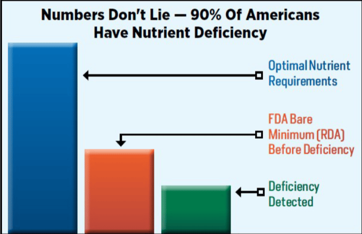 As I mentioned earlier, only 8% of Americans meet the minimum recommended daily allowances of their essential nutrients.