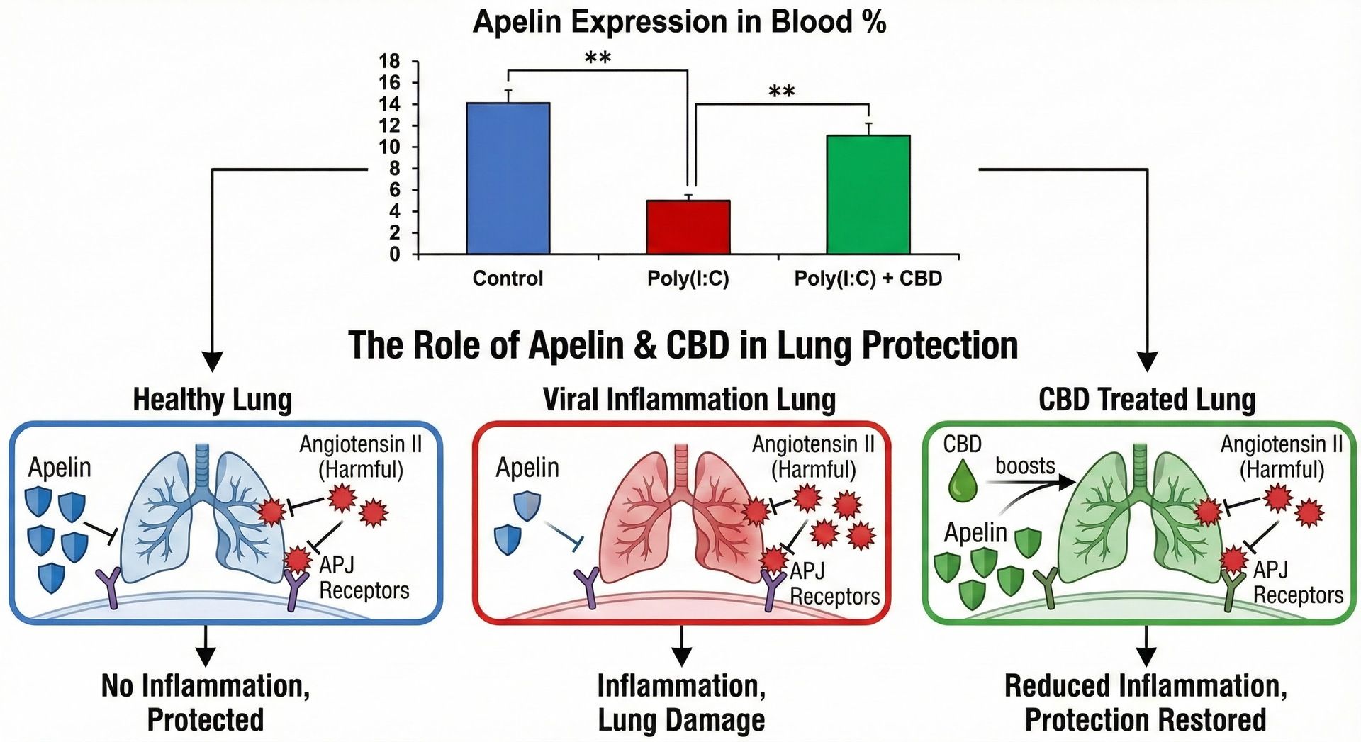 COVID causes the anti-inflammatory peptide Apelin to plummet, leaving lungs vulnerable to damage. Now a new study shows CBD boosts Apelin as much as 20X, helping restore lung function back to normal level.